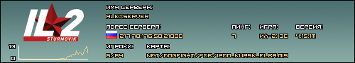 P.S. I built a whole bunch of Missions based on AleXserver's standard battle area, there is a lot of A.I. planes that need to be cut out, but there is also a lot of Ground units for when you are alone on the map, or for the few guys who fly Bombers exclusively to aim for. And all planes start in a Stationary Air Plane, no rolling from the back of a parking lot into the back of some one who just spawned. And that also give people something to shoot at if the make it to the enemies base chasing them or gain are alone on the server. But those three maps clear it out every time, rarely do you even get four guys even now at Prime Time it's Four guys. Anyways, I tried to tell you guys in Chat a while ago, give people something new, there are a lot of Maps there, and plane sets. A few things: the planes are limited to that theater and that time period, so there is not the variety available now. markings are restricted to the people who would be flying that theater as well. Most are Ground starts with a Air Start further back. There are a few where I could not find two bases close enough to have both ground starts. Cheers, hope this comes off as a friendly suggestion, not a criticism. Cheers! Noka